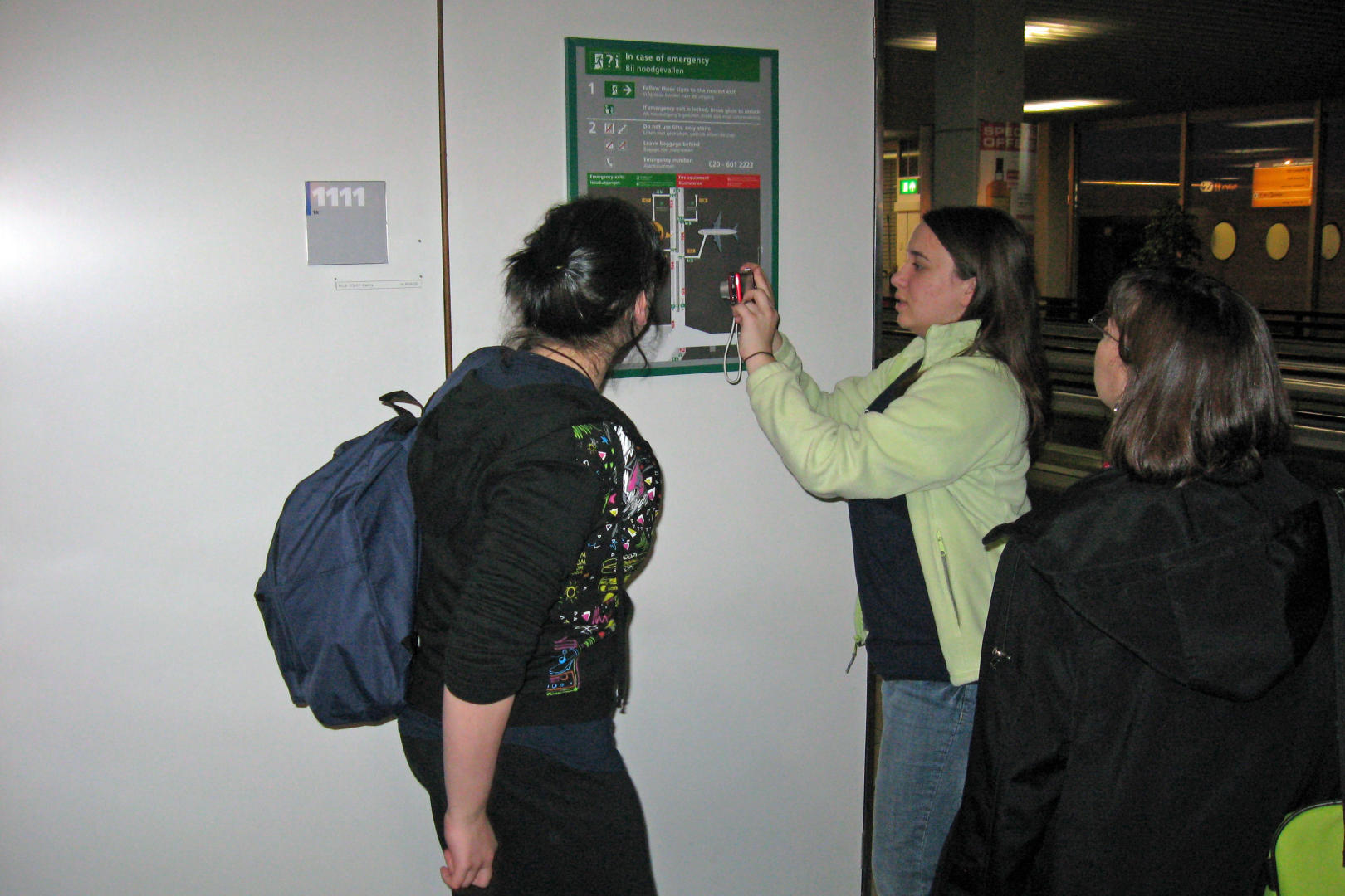 The flight to Amsterdam was pleasant. We sat near the back of the Airbus A330. Each seat had their own multimedia system. We had a choice of languages, and movies, music, games, or we could watch a world map with a graphic of a plane showing our position and direction. I watched Slumdog Millionaire, it was very good. After that I listened to music and tried to nap, though did not do a very good job of it. My daughter watched the same movie, then a familiar Hercules, then a lot of Australia. They fed us a couple times, too. Many others had trouble sleeping, we arrived a little earlier than our scheduled 6:30 AM, in other words 12:30 AM Des Moines time. There was one girl who, as we were waiting to de-plane, announced that she was well rested, as she took some Nyquil or something. This just before she fainted. It was a little stuffy at the back of the plane, and apparently she had not been moving enough to get blood moving very well. She woke up soon after and was assisted by adults nearby and was ok.