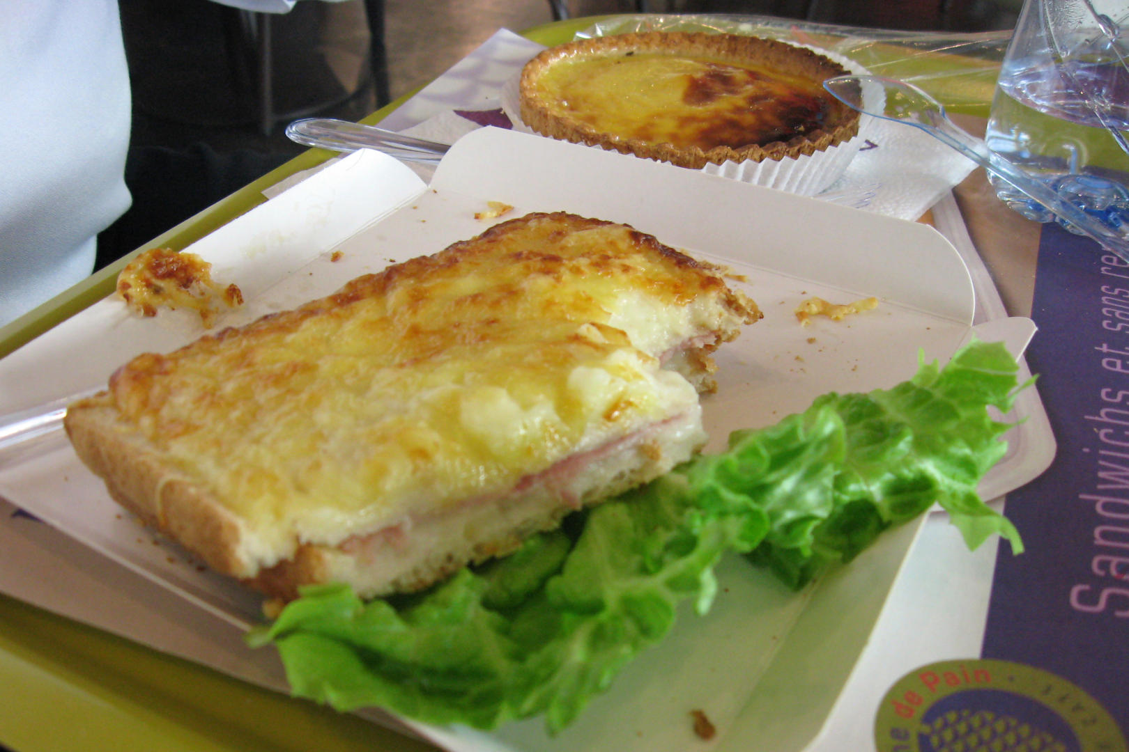 There is a Peace Memorial museum in Caen. We had some time allocated to go through the sections telling history about World War II and the Cold War and to get some lunch. There were at least a dozen French High Schools there at the same time, so I got separated from most of our group for a while. One of the other parents commented that if they took off their scarves and we could not hear them, we would not be able to tell them from American high schoolers. Many of them had little workbooks. I did not take a lot of pictures. I had lunch with my daughter, a croque monsieur with some flan. I did take a picture of that. I picked up a postcard to send home. Everyone went to see a multimedia presentation about the War from both sides simultaneously. We loaded up the buses a little before 2 PM.