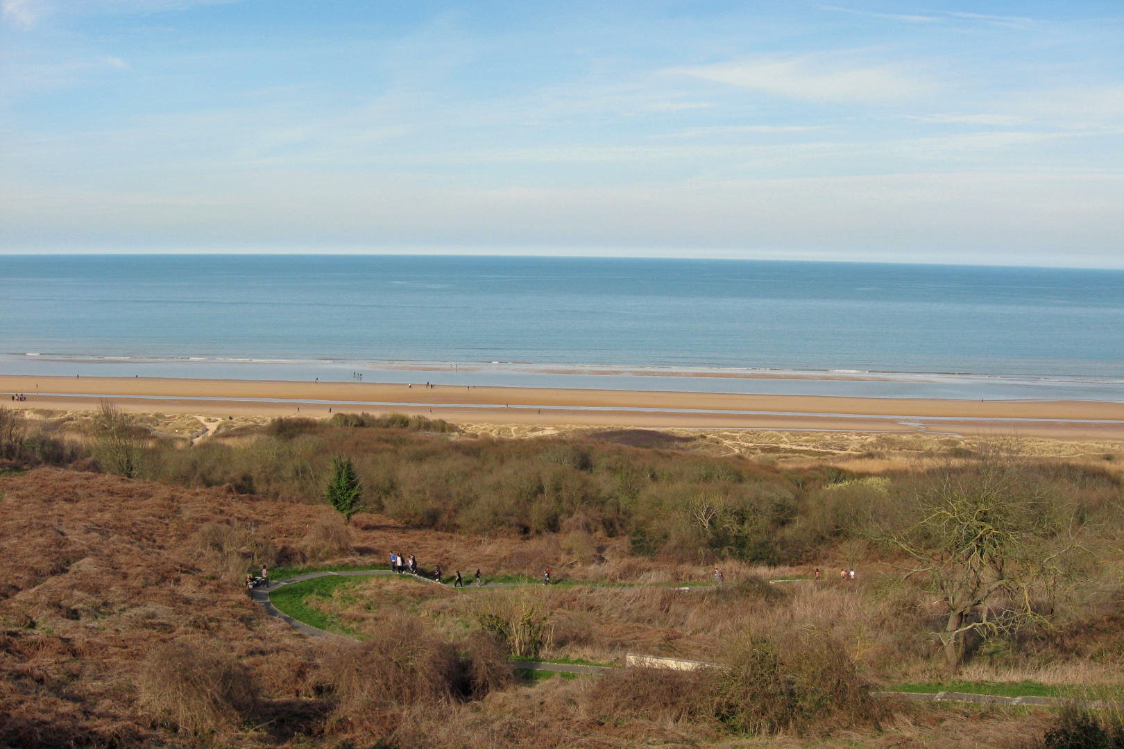The sun had come out, and the countryside was beautiful. One of the girls had come to the bus to change without getting a picture of the beach, so our guide talked to the driver about going slow at an area that was close enough to take a picture from the bus. I got pictures of some artificial harbor built during the allied invasion in 1944.