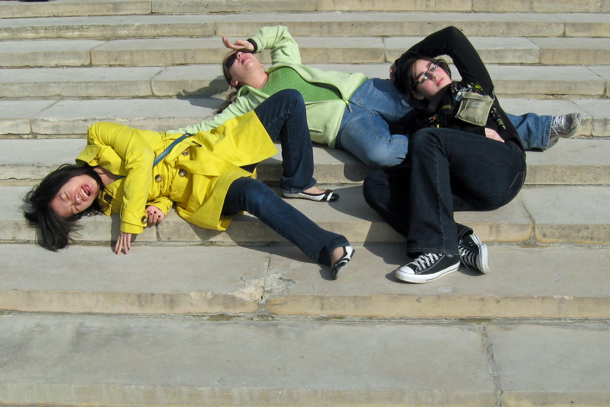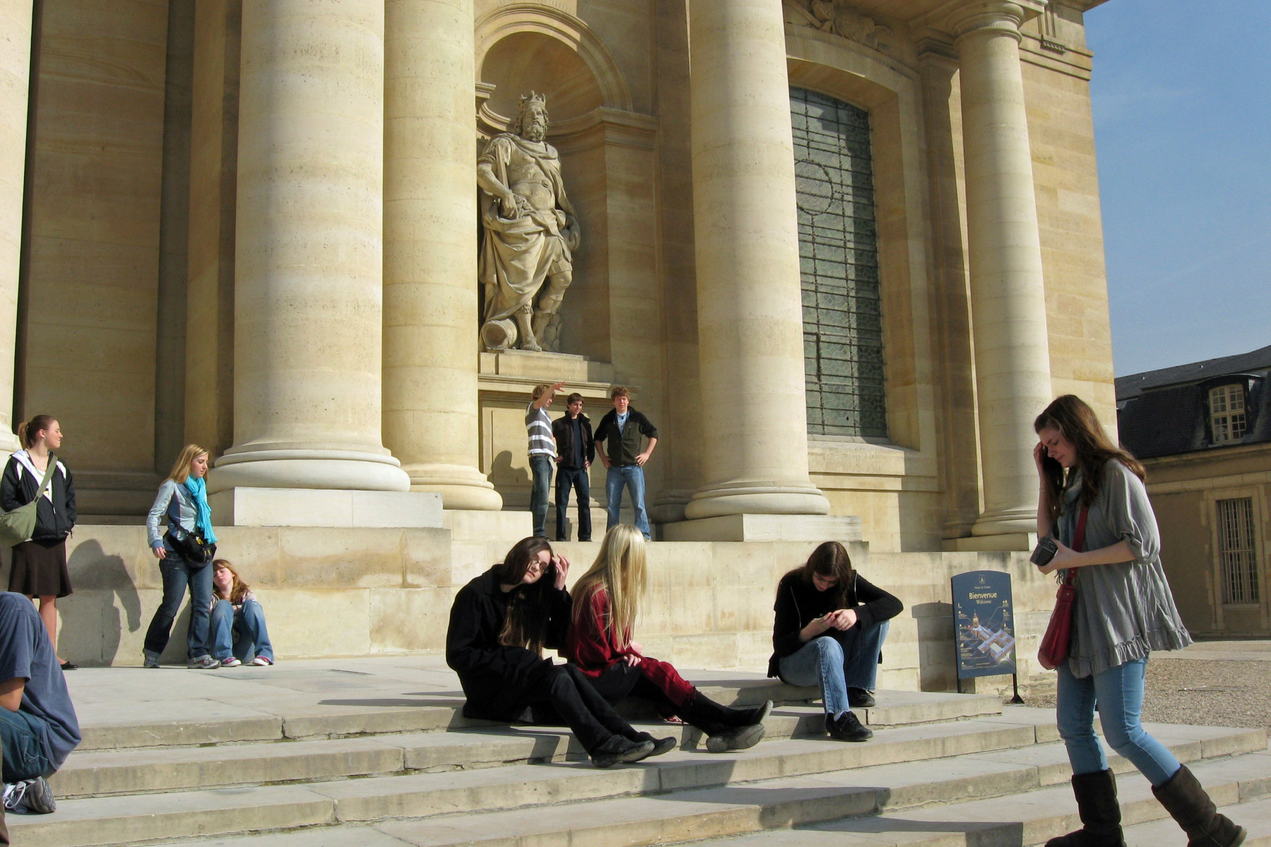 We drove over to the place where war veterans stay and Napoleon's tomb is located. It took some sorting out to get our tickets, so many of our group sat or lay down. They were showing signs of fatigue after almost a week. We took some goofy pictures, then got a picture with our tour guide.
