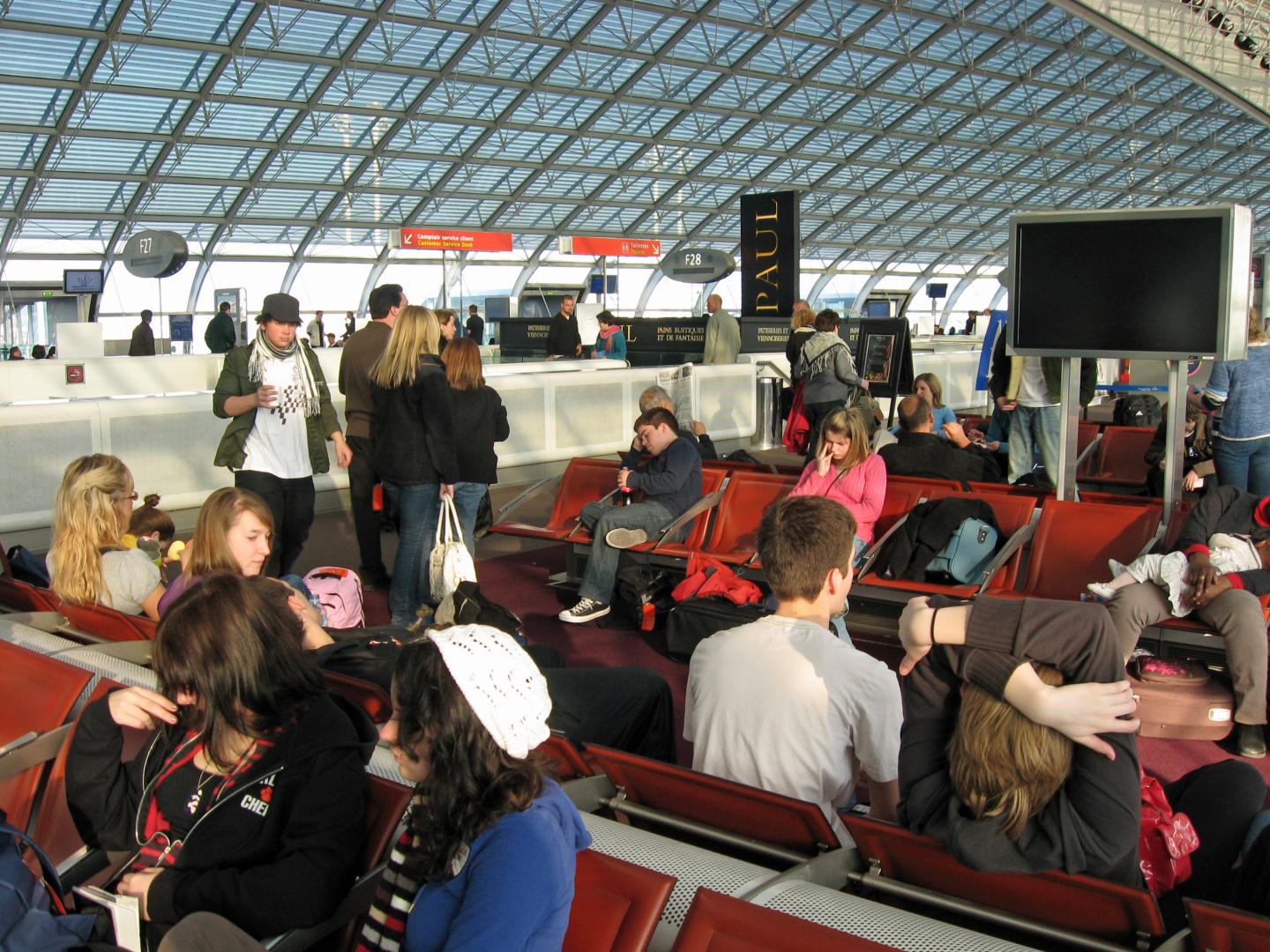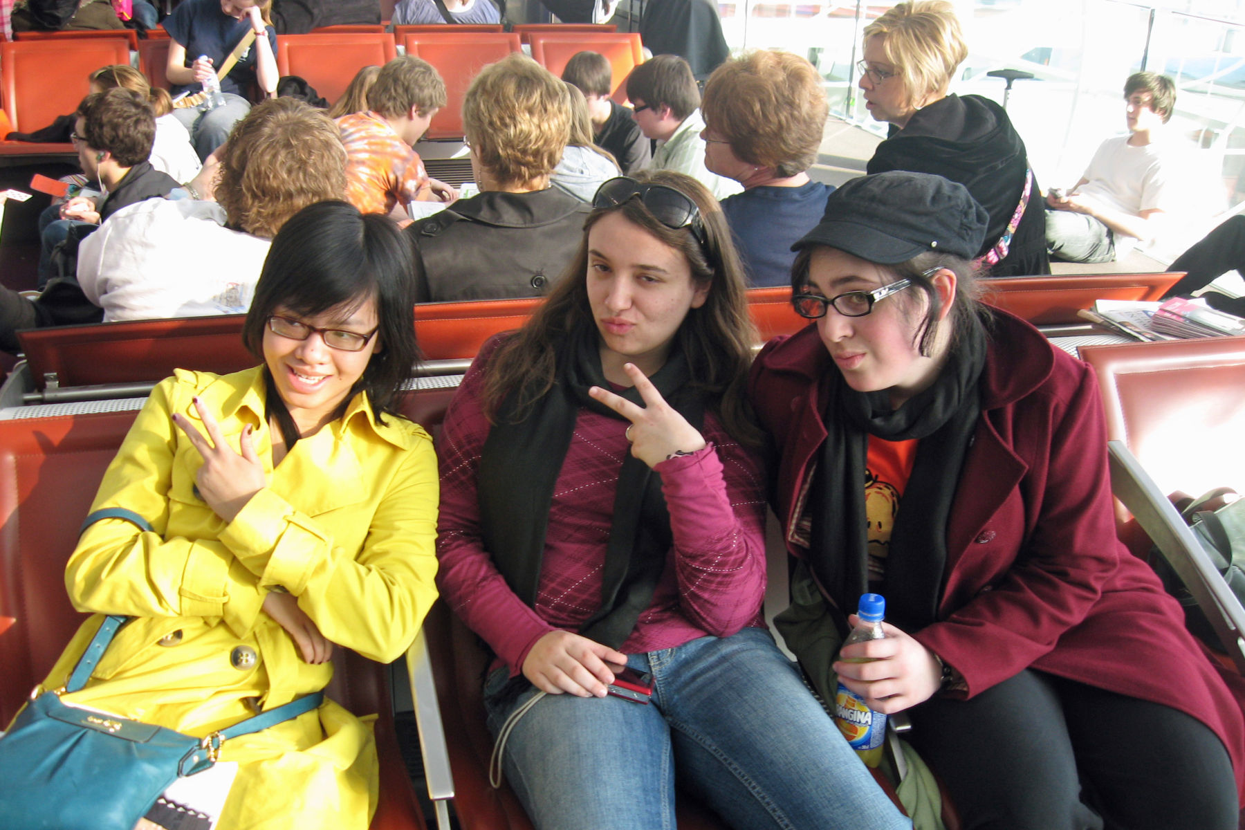 We had about an hour wait in Paris, so I got some type of pastry and coffee. I also picked up magazines to share back home. The students occupied themselves by resting, playing cards, eating snacks. We had a 9:45 AM flight scheduled.