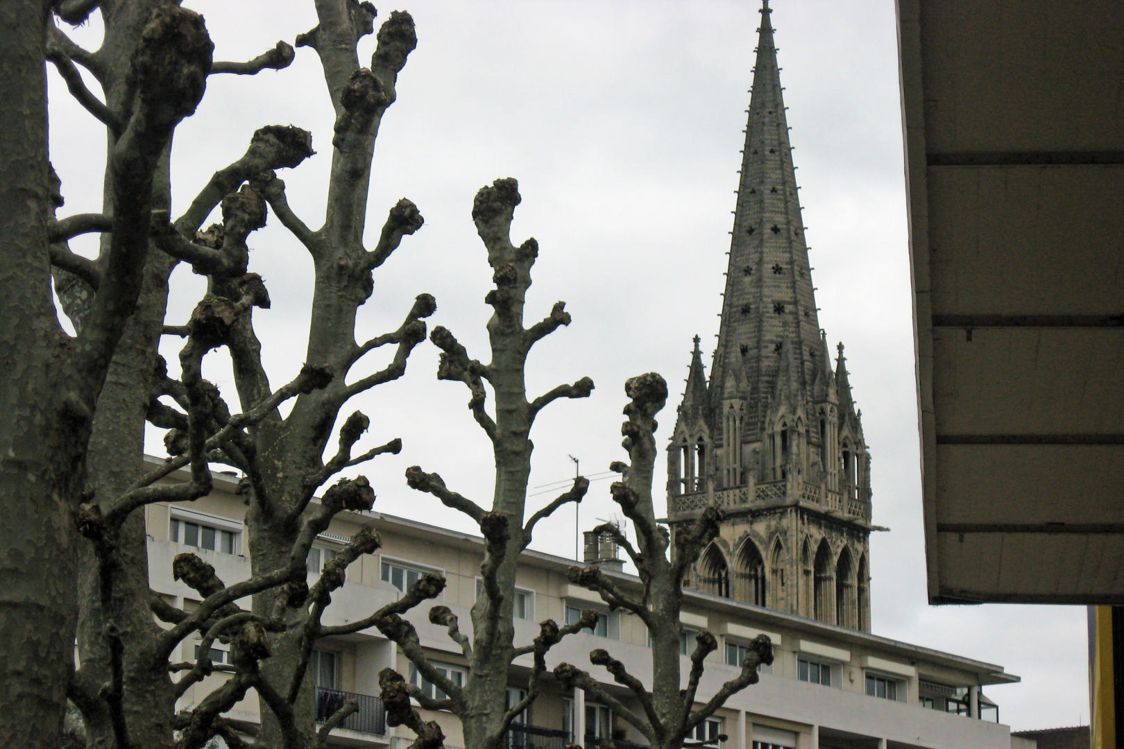 As we left the rest stop, there were a large number of seagulls in a nearby field and in the air. A sure sign that we were getting near the ocean. As we drove along, I began to notice trees that seemed to have all the branches cut off. I did not think too much of it at the time, but when I got to Caen, I noticed much larger examples.