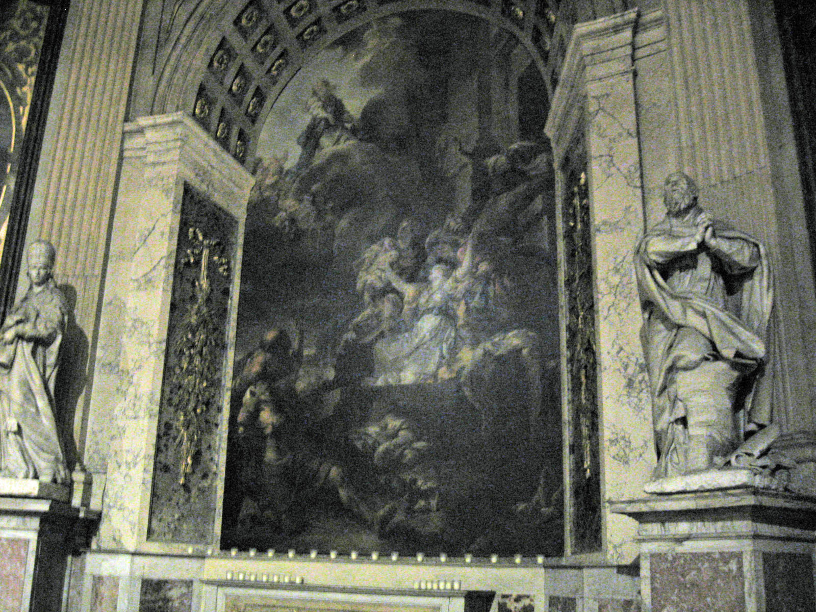 The last concert was to be at 8:30PM at Saint Roch, a mid 19th century church squeezed in a little North of the Louvre. We arrived at dusk. It had an unusual statue of some figure floating over the pulpit on the left side, directly across from the crucifix. I only took a few pictures. I could sense mixtures of sadness at the thought that we would be leaving the next day, and relief that we would be leaving the next day. Most of us were a little exhausted. To be honest, the performances sounded as good to my rock music damaged ears as any of the others. The orchestra director made the unusual move of letting the choir director conduct the combined performance. It moved her and caused some consternation in the orchestra but I thought it a good move for the last performance. I did notice that he went back in the audience and enjoyed the performance from a different perspective, just watching and listening to the result of everyone's months of hard work.